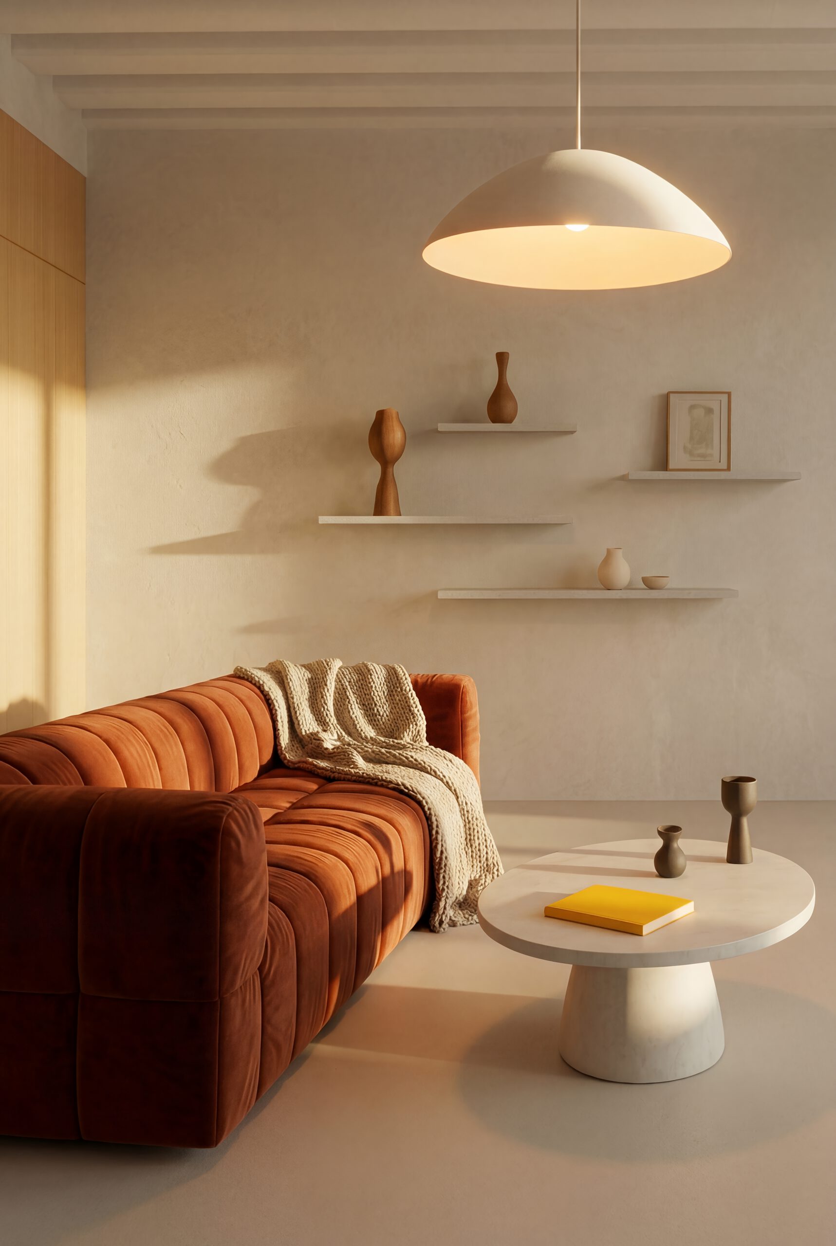 El objetivo era transformar un espacio urbano compacto en un refugio cálido y memorable. El diseño enfatiza geometrías suaves, texturas cálidas y una paleta de tonos arena, terracota y azul intenso que aportan profundidad y armonía a cada estancia.